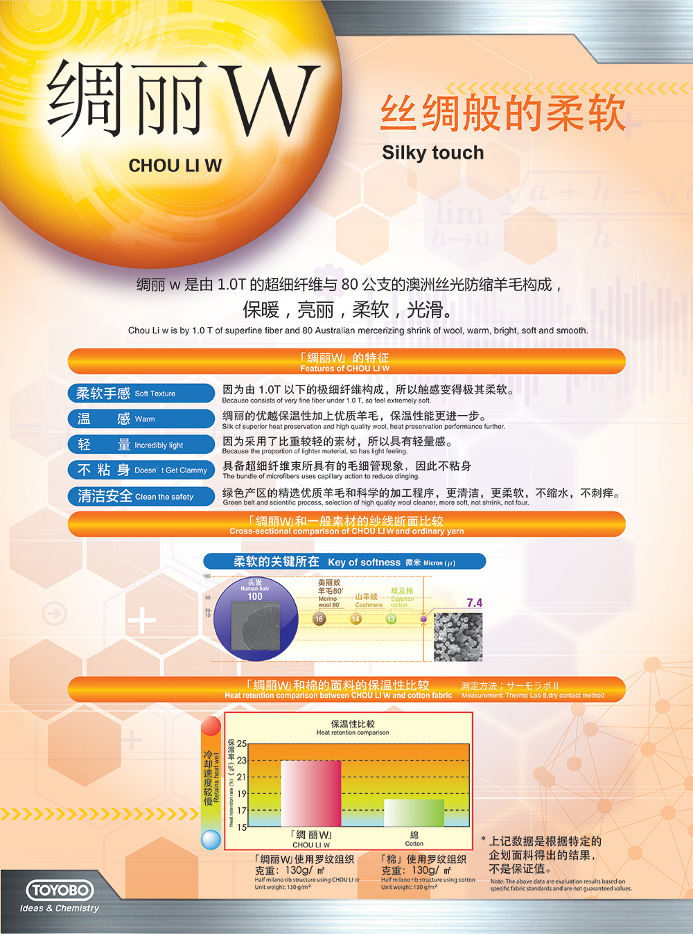 威豐纖維科技有20多年服務(wù)客戶的經(jīng)驗(yàn),依靠東洋紡強(qiáng)大的研發(fā)能力和評(píng)價(jià)系統(tǒng),整合上下游資源,創(chuàng)新營(yíng)銷模式,領(lǐng)導(dǎo)行業(yè)潮流。同時(shí)緊跟您的需求,因您而變,為您量身定做,鏈接科技與時(shí)尚。
